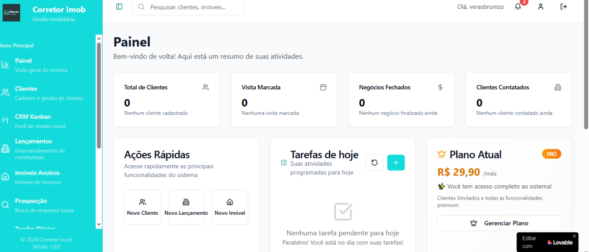 Com apenas R$ 29,90/mês, você terá em mãos o CRM e Gerador de Leads que organiza clientes, imóveis e tarefas do dia a dia.